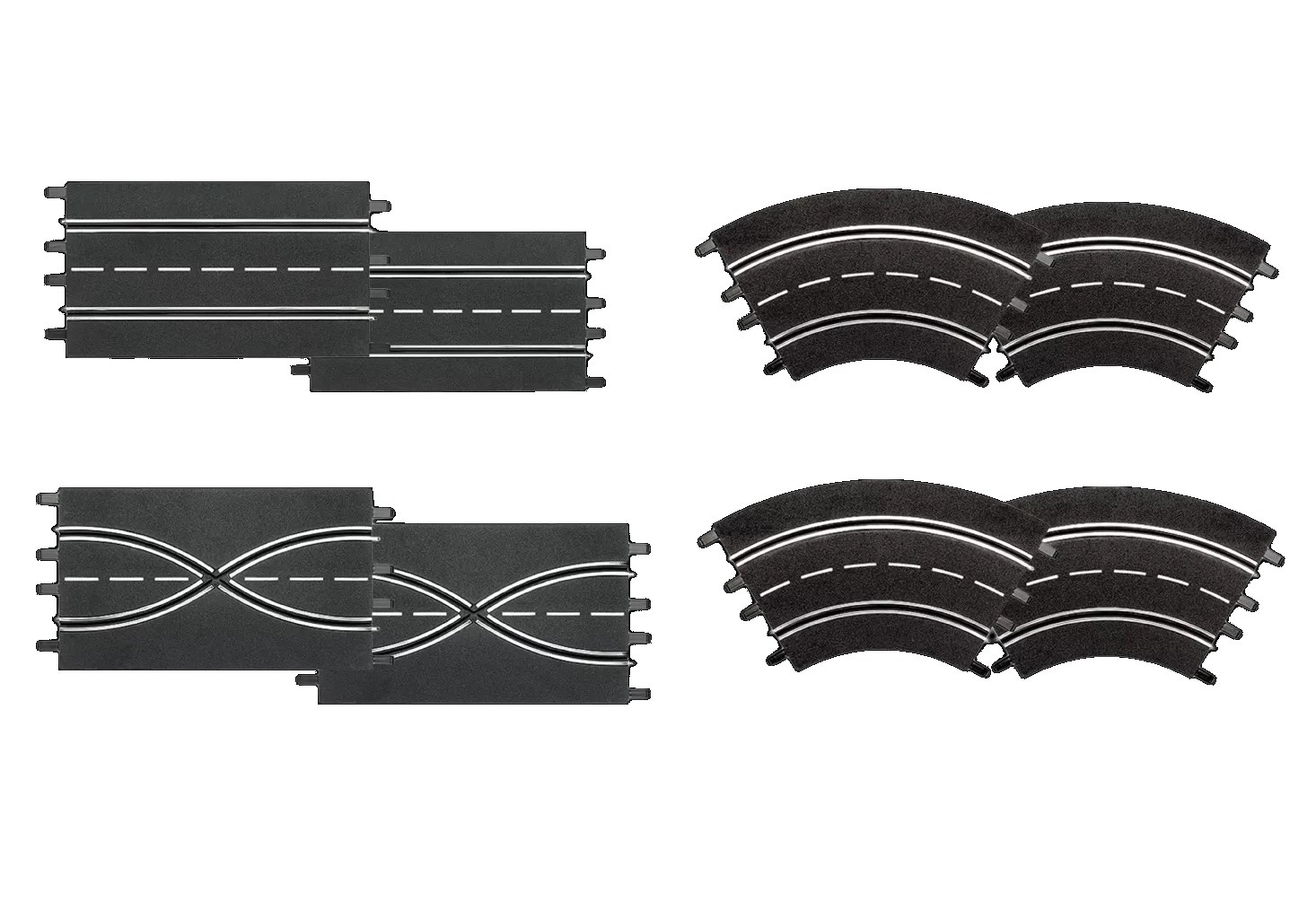 Contenu de l'emballage : 2 pièces lignes droites standard, 4 pièces de virages 1 / 30 degrés