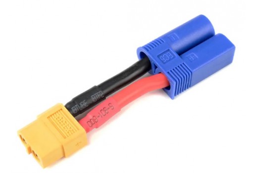 Permet de brancher un accu équipé d'une prise XT 60 sur du matériel prévu pour une prise EC5...