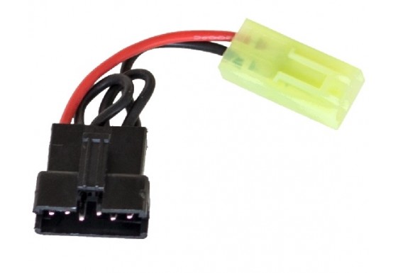permet de brancher les accus équipés avec le nouveau connecteur multibroches noir, sur les véhicule Funtek possédant des prise mini Tamiya...