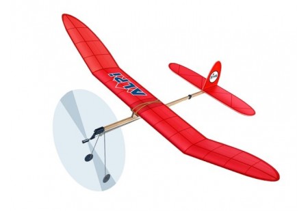 Le Bambino est un planeur à voile avec un moteur à caoutchouc. Le kit est fabriqué en bois de balsa.