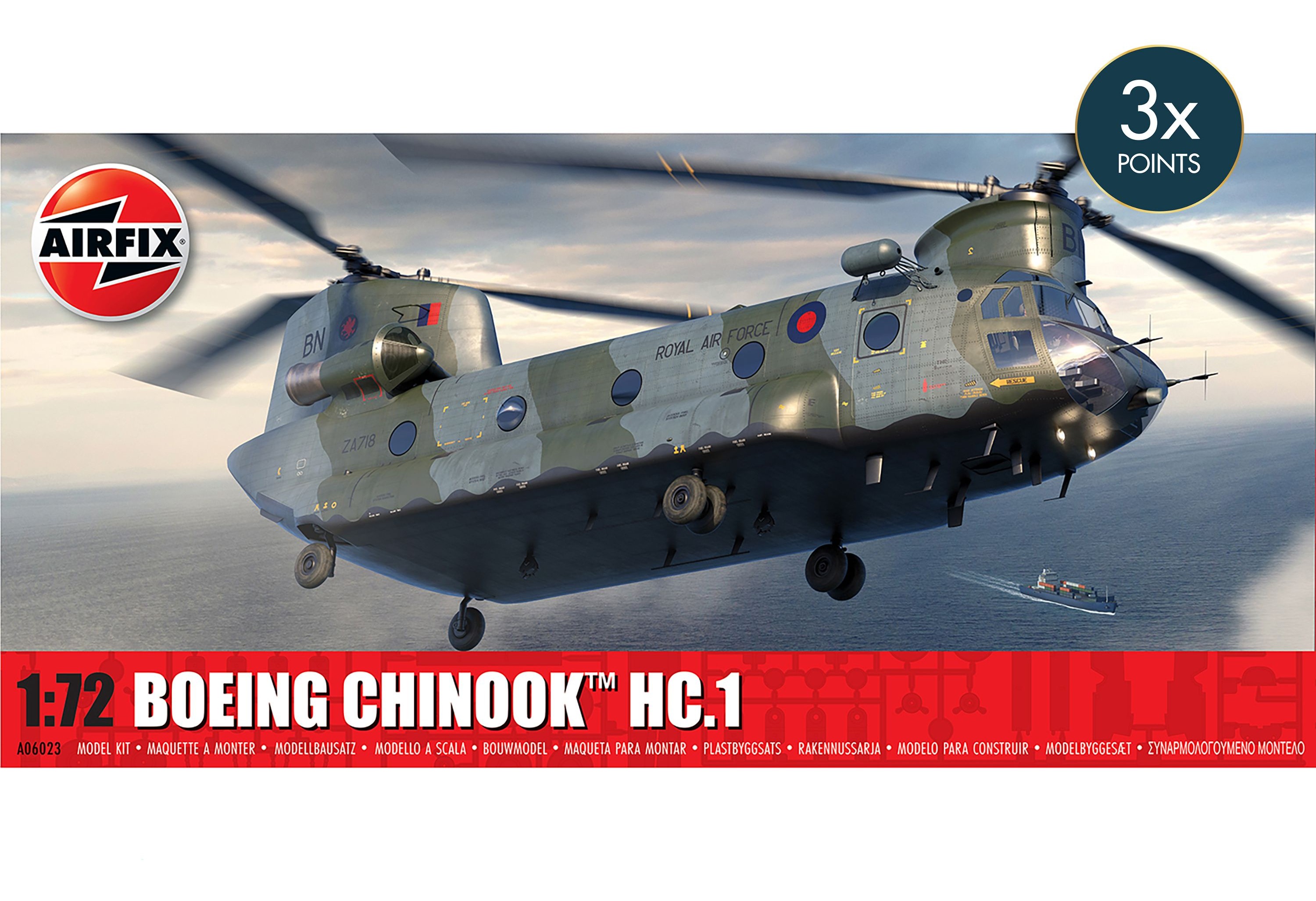 Cette remarquable maquette au 1/72 du Boeing CH-47 Chinook HC.1 reproduit fidèlement la conception unique à double rotor en tandem de ce célèbre hélicoptère de transport lourd. Composée de 171 pièces et classée niveau de...