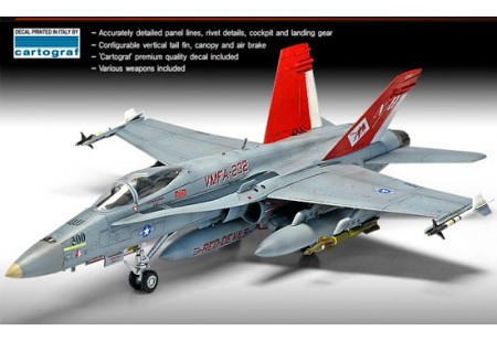 USMC F/A 18A+ VMFA-232 Red Devils 1/72. Edition Limitée avec Décals de haute qualité réalisés par Cartograf. Reproduction de la version marine US du F/A 18A+. Plusieurs types d'armements inclus....