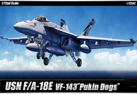 USN F/A-18E VFA-143 "Pukin Dogs". Maquette à construire et à peindre avec décals de haute qualité imprimé par Cartograf, 2 décorations au choix. Moule finement gravé notamment pour les lignes de structure et les rivets. Cockpit et puits de trains détaillé...