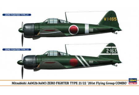 1/72 MITSUBISHI A6M2b/A6M3 ZERO FIGFHTER TYPE 21/22 "201ST FLYING GROUP COMBO" (Two kits in the box) WWII Japanese Fighter Normal JT series 46 + 44 D21(00451) - Regular item in 2010 AP15(51315) - Not regular item in 2010 Type 21: 1) I.J.N. 201st F.G. Code...