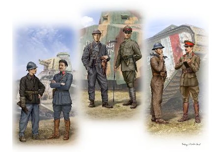 6 figurines en plastique de tankistes 1ere GM: 2 x Français, 2 x Allemands, 2 x Britanniques. Destinées à tous les kits de chars 1ere guerre mondiale à l’échelle....