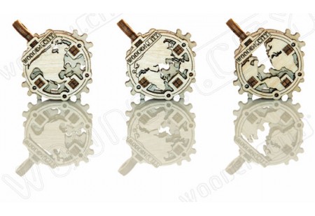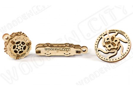 Assemblez ces 3 objets en bois, 2 portes clés à mouvements mécaniques et une toupie