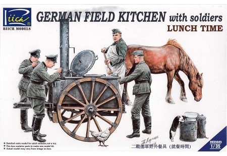 CUISINE DE CAMPAGNE ALLEMANDE AVEC SOLDATS (CUISINIER & TROIS SOLDATS/SOUS-OFFICIERS + CANTINES)...