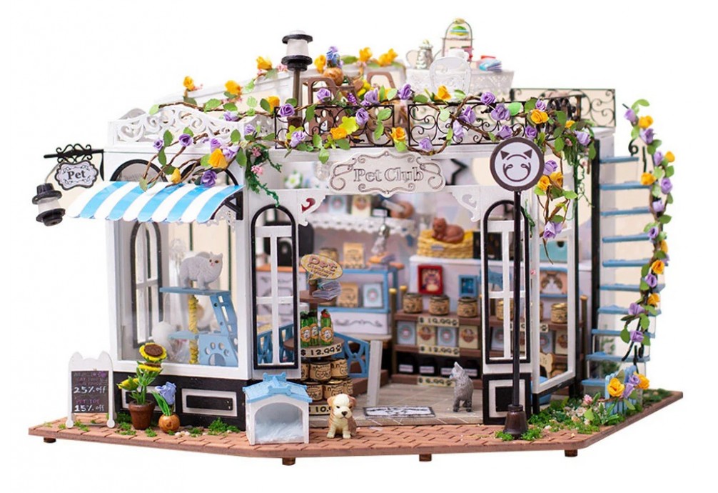 Alliant loisirs créatifs et maquettisme, cette collection de maisons miniatures à monter soi-même inclut des kiosques, des boutiques et des pièces de maison détaillées.