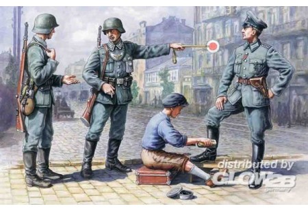 Le kit contient 5 figurines à démonter de l'équipage du char allemand et des outils de travail...