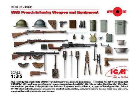 La boîte contient des modèles de cinq figurines avec des armes et des équipements d'infanterie....