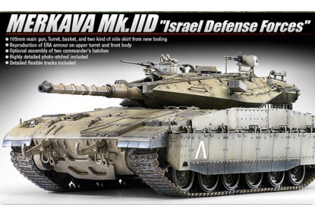 Merkava MK, IID, Forces Israéliennes 1/35. Nouveau moule complet pour la tourelle; nouvelles pièces pour les parties du châssis supérieur, avant et arrière modifiés pour cette version du Merkava. Nouvelles chenilles et roues utilisées par le Merkava MK.IV...