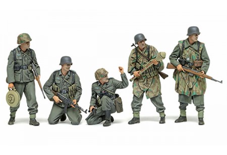 En complément au set de figurines "Infanterie Allemande Fin de 2ème G.M. 1/35" (35371), Tamiya propose ce nouvel ensemble de fantassins mais cette fois de fin de conflit (1943-1945). Les uniformes allemands de cette période étaient du type M43, simplifiés...