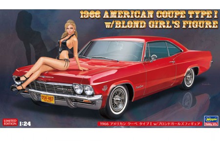 •Boite contenant une maquette de Chevrolet Impala 66 coupé SS à assembler par collage et peindre ainsi qu'une figurine en résine à peindre.