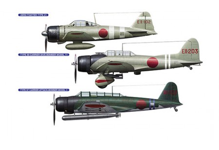 Zero fighter type 21 & Type 99 Carrier Dive-bomber model 11 & Type 97 Carrier attack-bomber model 3 1/48