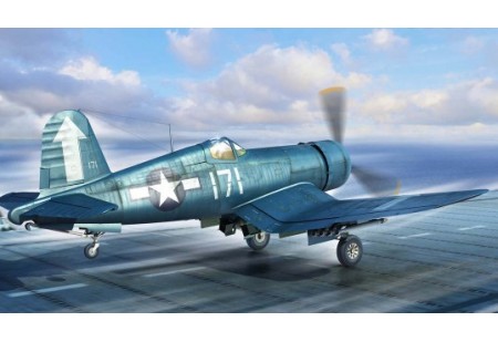 Le monoplace « Corsair » a été le dernier avion de chasse à hélice de la marine à être produit aux États-Unis. Grâce à son apparence unique avec les ailes articulées inversées, il convenait comme avion porteur, mais a été piloté par des pilotes du Corps d...