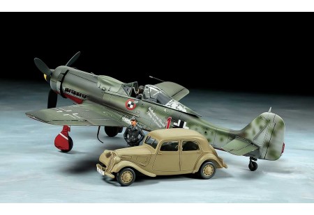 Retrouvez dans la même boite spécifique les kits du Focke-Wulf Fw190D-9 JV44 (61081) et de la Citroën Traction 11CV (32517) avec de nouveaux marquages pour cette dernière et un guide de décoration additionnel.