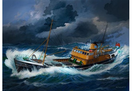 La planche de décals fournit dans la boite permet la réalisation de la version suivante : Northsea Fishing Trawler MV Ross Jackal , Great Britain, 1961