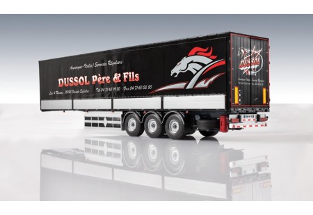 Reproduction fidèle et très détaillée d'une semi-remorque porte-grumes trois essieux GSODAM.