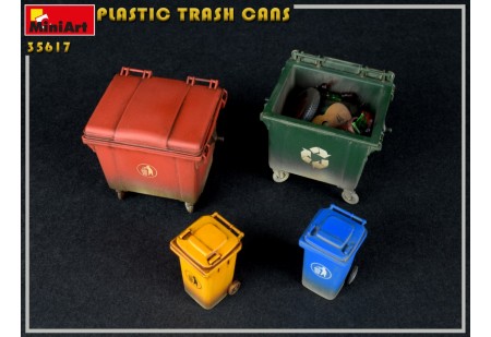 Kit plastique, échelle 1/35eme, comprenant les pièces pour assembler quatre poubelles et bennes à ordure
