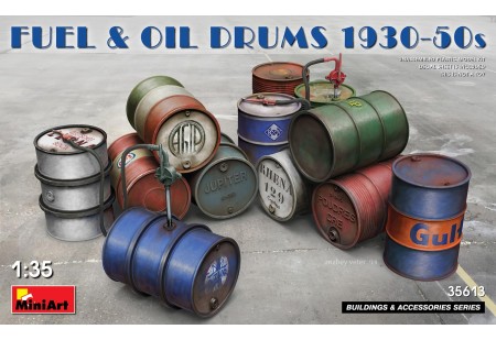 La boîte contient 12 modèles de baril de carburant et d'huile des années 1930-50.