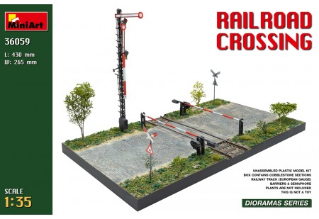 Le kit en plastique non assemblée contient des sections pavées de voie ferrée. Les barrières et sémaphore ne sont pas inclus.