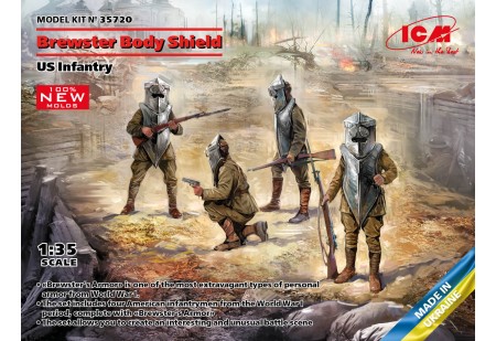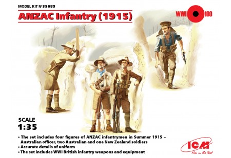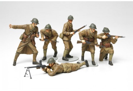 La boîte contient des modèles de quatre figurines avec des têtes en résine, une arme d'infanterie et de l'équipement....