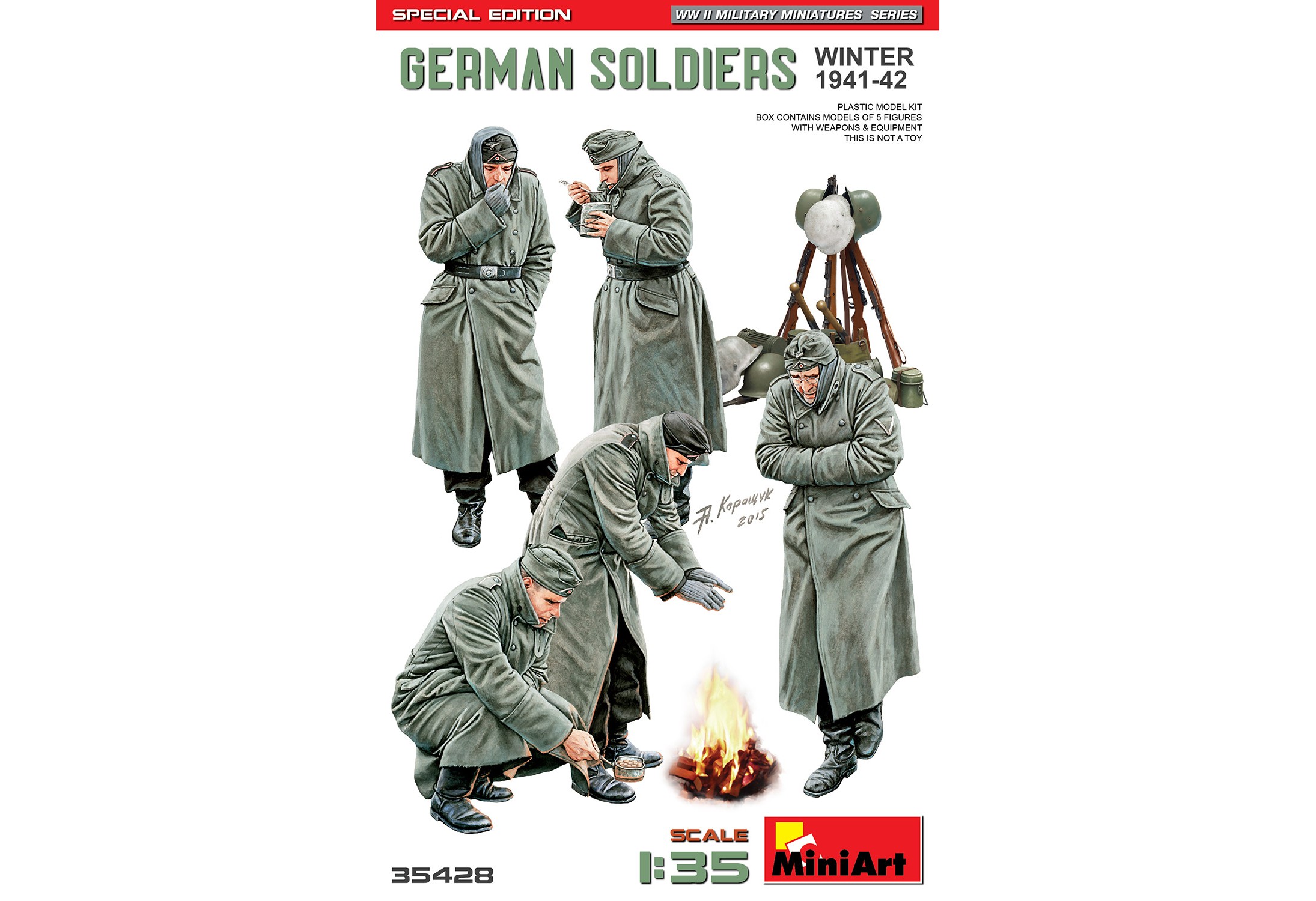 Ce kit de maquette de haute qualité à l'échelle 1:35 comprend cinq figurines détaillées de soldats allemands endurant l'hiver sur le front de l'Est pendant la Seconde Guerre mondiale.