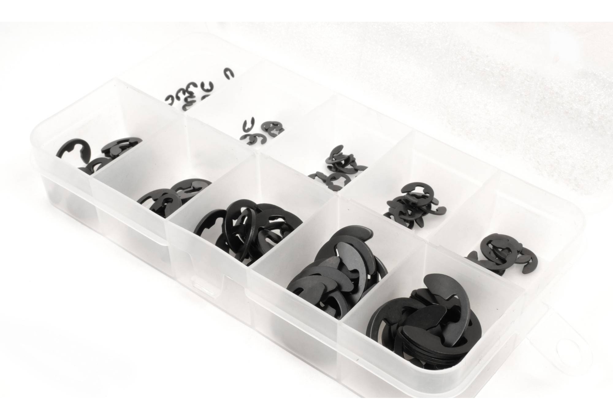 Assortiment de 120 circlips avec boite de rangement comprenant : 12x 1,5 - 2,0 - 3,0 - 4,0 - 5,0 - 6,0 - 7,0 - 8,0 - 9,0 - 10,0...