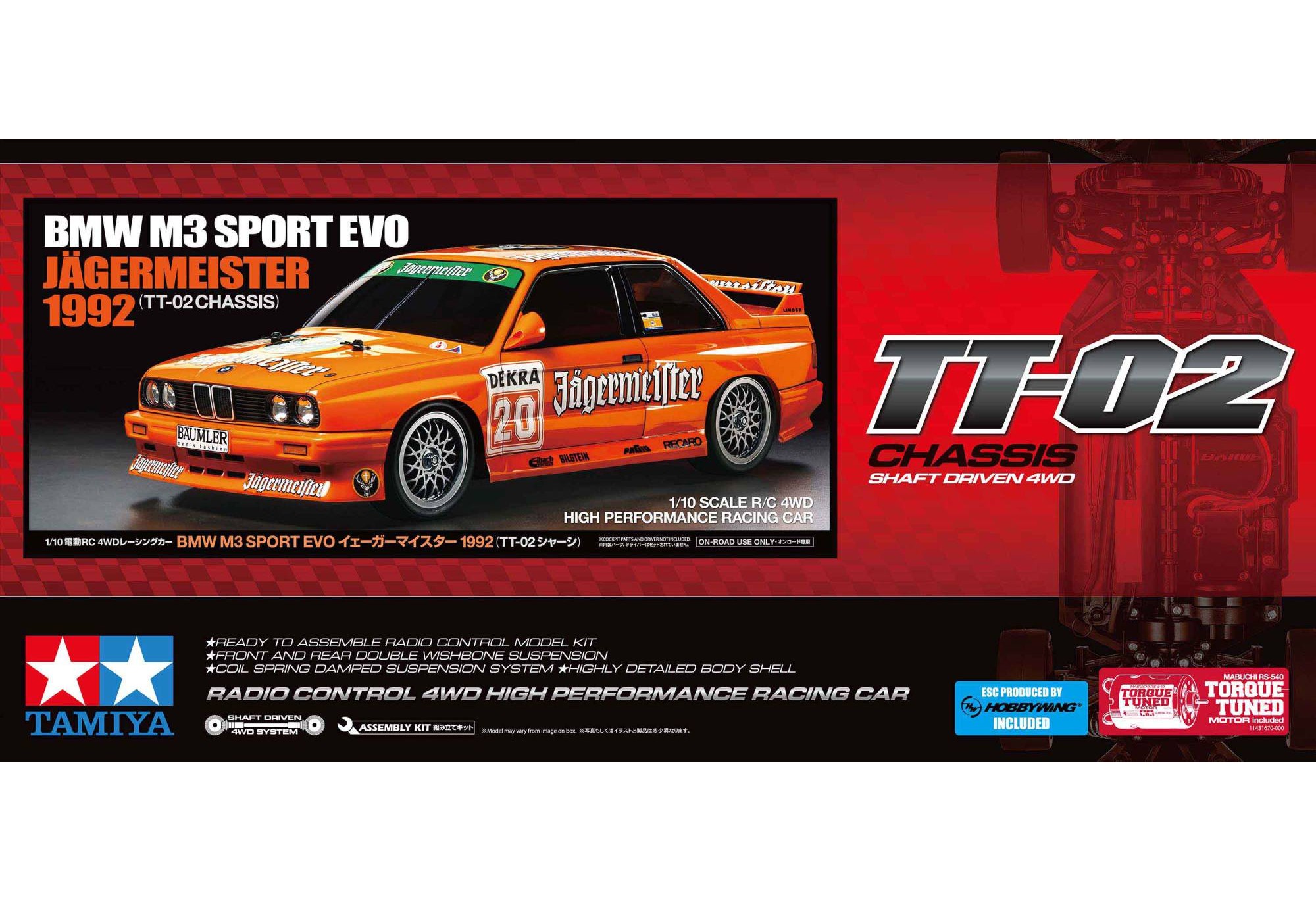 Tamiya présente une nouvelle voiture de compétition – la légendaire BMW M3 Sport EVO Jägermeister 1992 – associée au châssis polyvalent TT-02.