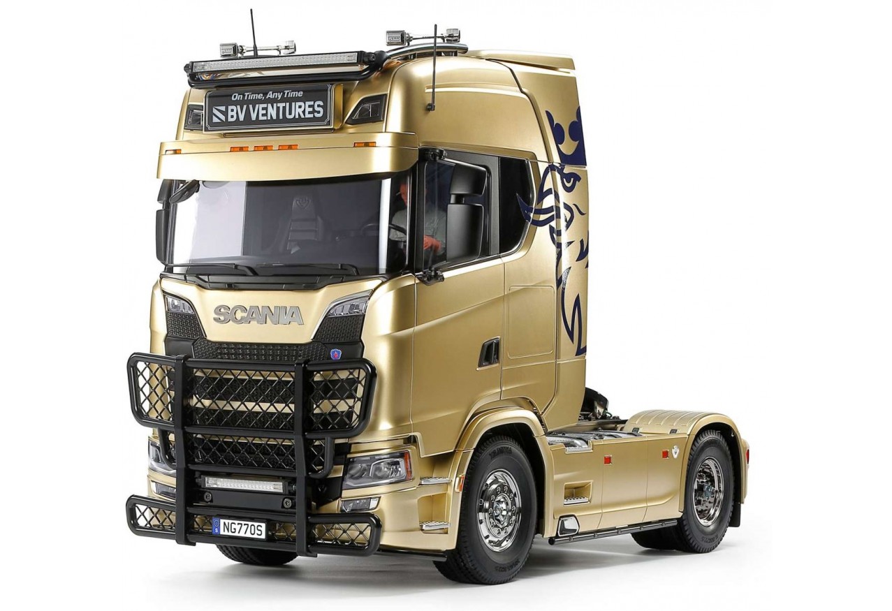 Tamiya accueille dans sa série de camions RC 1/14 le Scania 770 S 8x4/4 de la toute nouvelle gamme NEXT GENERATION du constructeur suédois. Ce 8x4/4 (2 essieux moteurs arrière et deux essieux directeurs avant) est destiné à la traction de charges lourdes ...