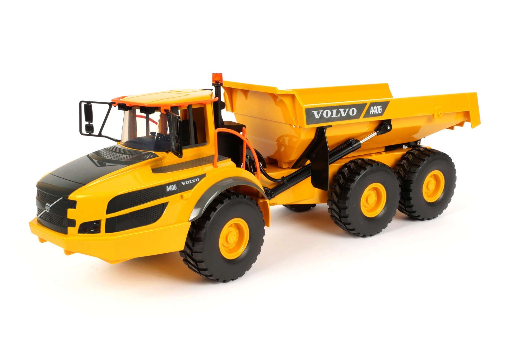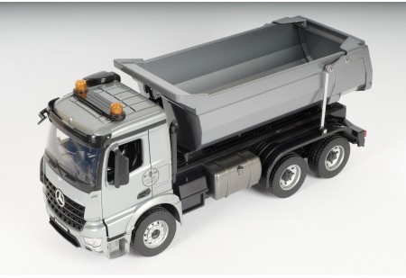 Réplique radiocommandée échelle 1/20 d’un camion benne de travaux publics. Réalisme absolu, y compris pour les fonctionnalités identiques à celles d’un vrai, avec des effets sonores en plus !
