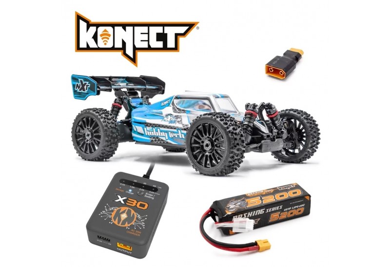 Ce buggy possède une transmission à 4 roues motrices, une électronique Konect by Hobbywing et il est équipé d’amortisseurs b...