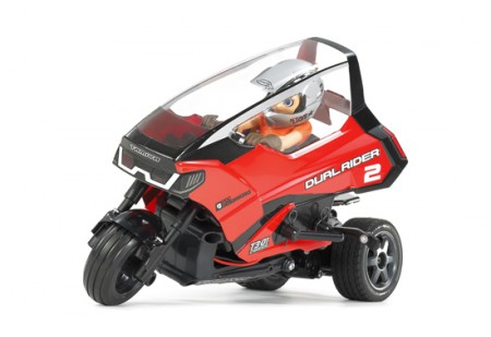 Voici le second modèle basé sur le châssis tricycle T3-01 conçu pour un pilotage facile avec des prises de virage en inclinaison. Le Dual Rider a une toute nouvelle carrosserie aux lignes futuristes et une nouvelle figurine de pilote.