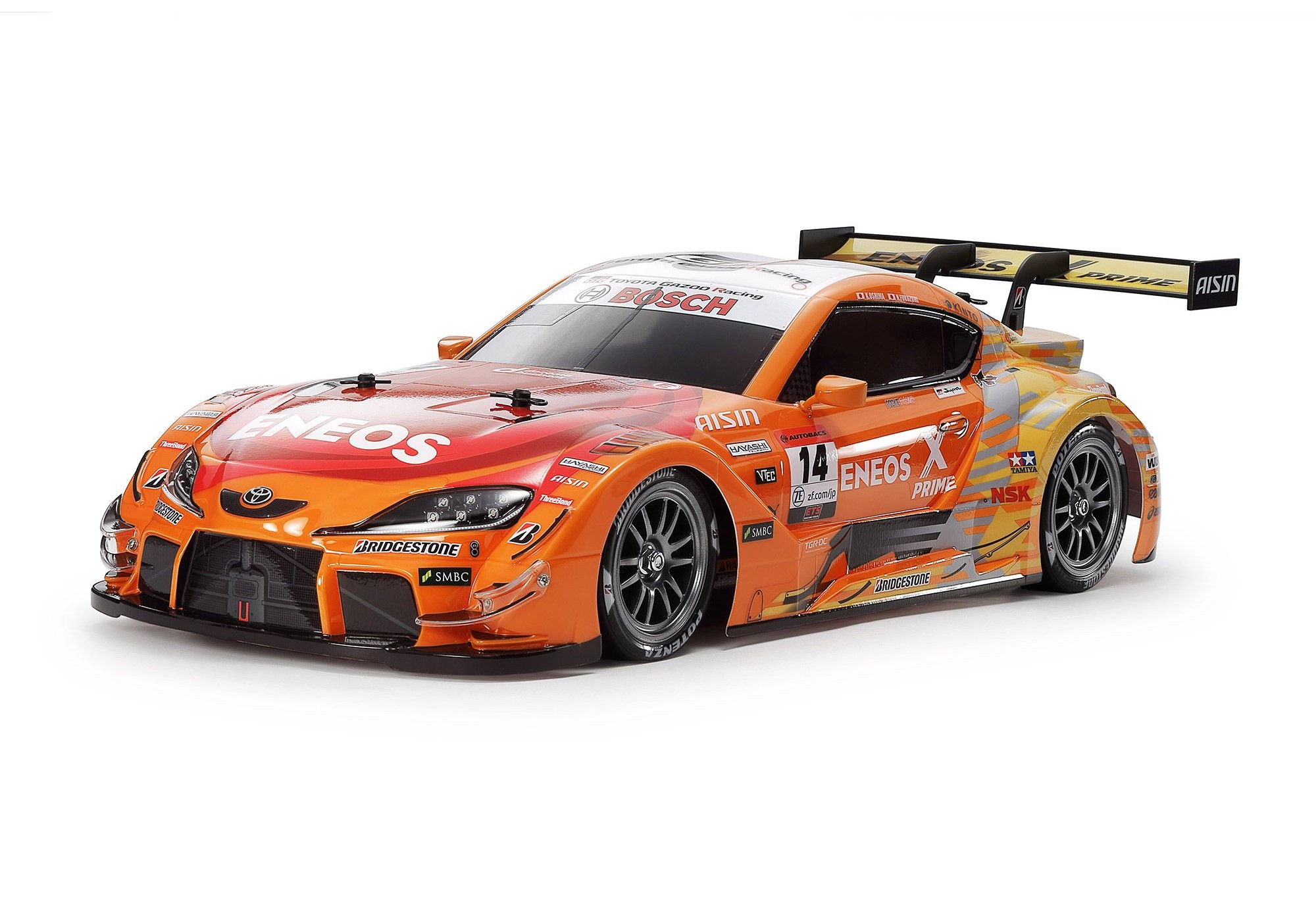 L’ENEOS X PRIME GR Supra du team ROOKIE Racing à la livrée orange vif est l’une des six GR Supra engagées dans la série Super GT GT500 en 2024. La carrosserie en fibre de carbone, inspirée de la GR Supra de série, est dotée d’appendices aérodynamiques q...