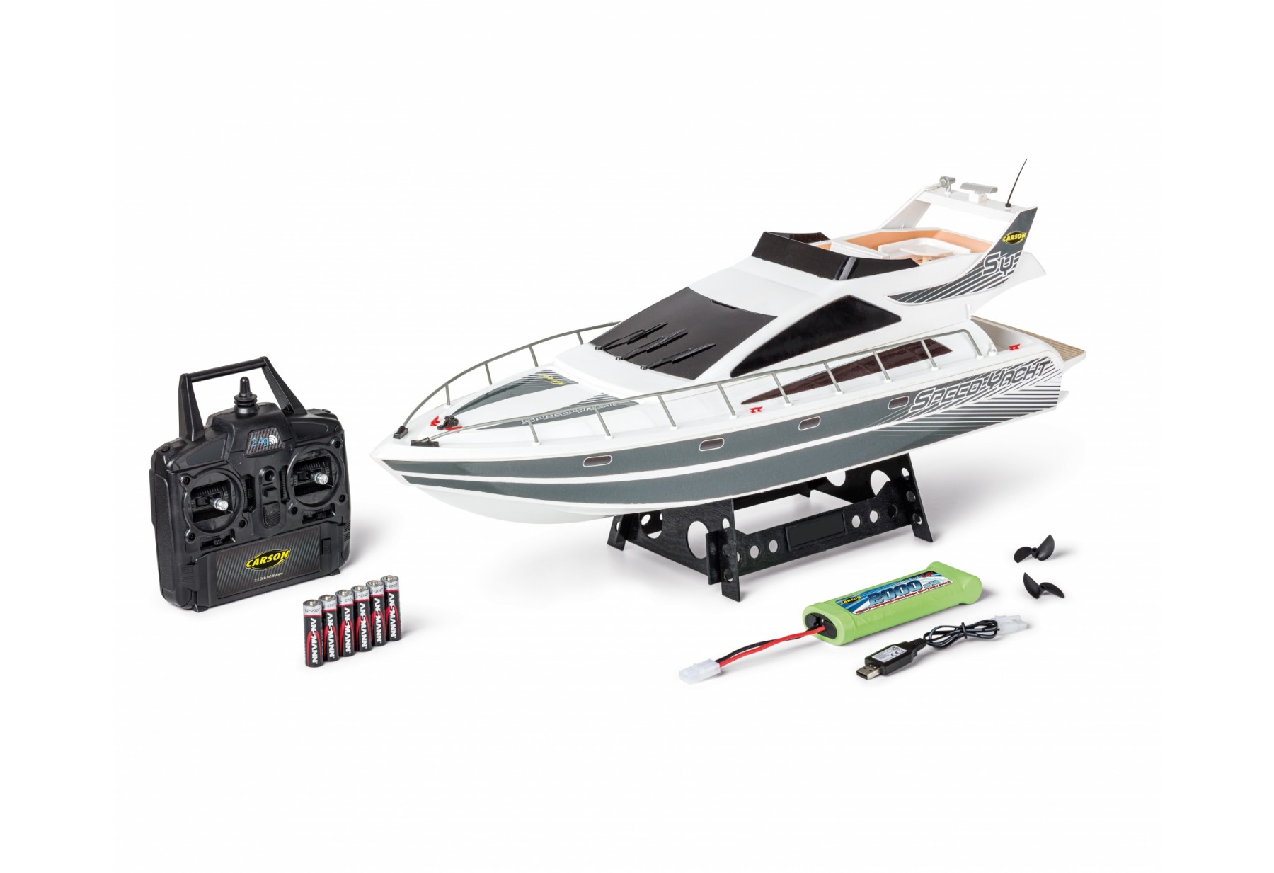 Le yacht de luxe télécommandé trouvera sa place sur l’étang du coin ou sur un petit lac. Il navigue sur l’eau jusqu’à 10 km/h. Il est équipé d’une hélice qui, pour des raisons de sécurité, ne se met à tourner que lorsque...