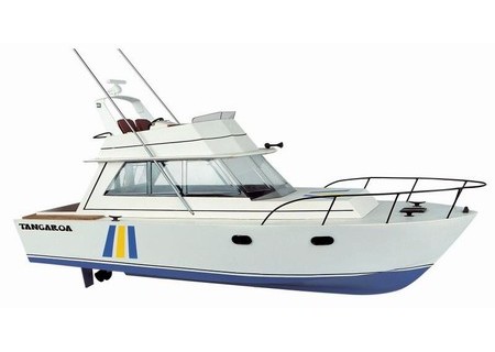 Bonitier de Tahiti. Bateau de pêche à la bonite, sorte de petit thon, son nom Tangaroa vient de la mythologie polynésienne. Coque à bouchain vif en contre-plaqué 15/10 avec bloc avant et pavois en bois massif....