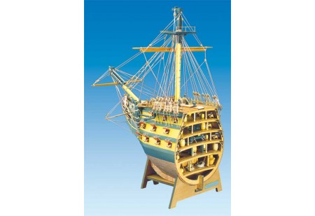 Ce modèle unique par sa taille et la richesse de son gréement comporte plus de 100 canons, il possède un château arrière finement décoré, digne d'une maquette de grande classe. Accastillage très complet inclus dans la boîte. Poulies et caps de mouton en b...