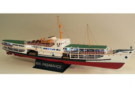 Très belle maquette statique en bois entièrement à assembler d'un ferry à vapeur du Bosphore