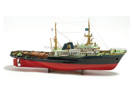 La coque est en plastique ABS. Le pont et la cabine en contre plaqué prédécoupé.