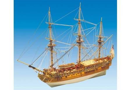 Ce modèle unique par sa taille et la richesse de son gréement comporte plus de 100 canons, il possède un château arrière finement décoré, digne d'une maquette de grande classe. Accastillage très complet inclus dans la boîte. Poulies et caps de mouton en b...